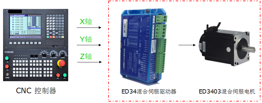 漢德保公司的配置方案為(X/Y/Z):ED34混合伺服驅動器 + EMH3403 混合伺服電機